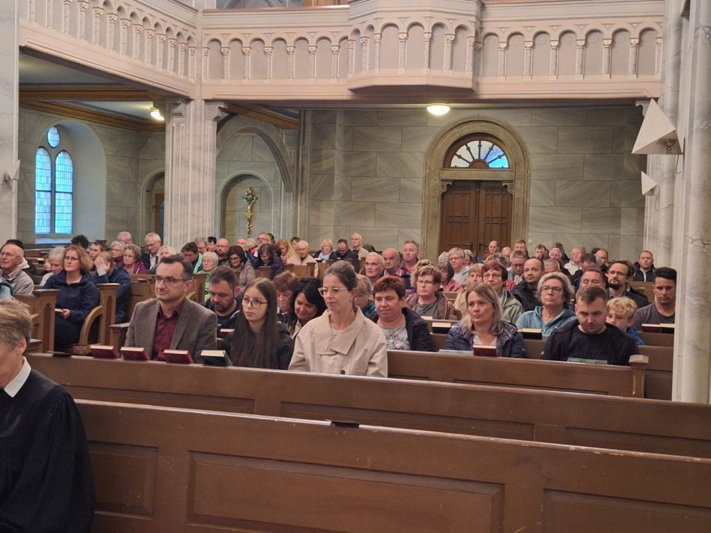 Die Ev.-luth. Pfarrerin Inge Theilemann und die Gemeindereferentin Barbara Ludewig von der Röm.-Katholischen Pfarrei gestalteten diese Andacht. Teilnehmer aus allen Bereichen der Bürgerschaft Lengenfelds waren zahlreich vertreten. Stadträte, Gemeindemitglieder der anderen christlichen Kirchgemeinden und der katholischen Gemeinde, der BIL und viele Bekannte aus Vereinen und Familie waren gekommen.