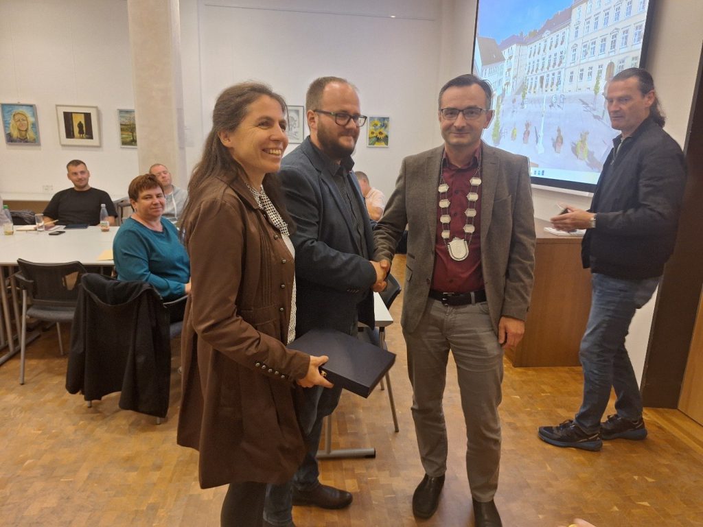 Überreicht wurde die Amtskette vom Vorsitzenden des Vereins StadtLeben, Torsten Reichel und der stellv. Vorsitzenden Katja Körner.
